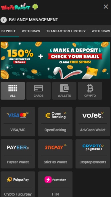 خيارات الخدمات المصرفية في White Rabbit Casino