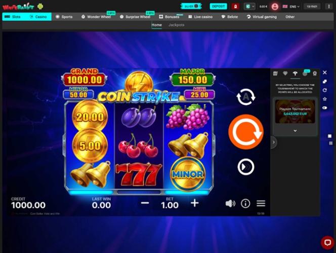 تتوفر العديد من ألعاب ماكينات القمار على الإنترنت التي يمكن للاعبين الاستمتاع بها. من أشهر ألعاب ماكينات القمار ذات الذراع الواحدة في كازينو وايت رابيت: نيون كابيتال بونس باي، وماجيك جاردن 10، وبابل، وباترفلاي لوفيرز، وإلهة الليل، وسوبر بارتندر، وهوت ريو نايتس.برنامج نقاط المنافسة