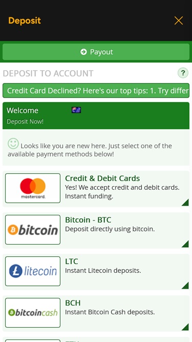 - يُسمح للاعبين من بلدان معينة بإجراء الإيداعات باستخدام خيارات الخدمات المصرفية المشفرة فقط.