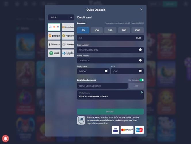 خيارات الخدمات المصرفية في WildTornado Casino