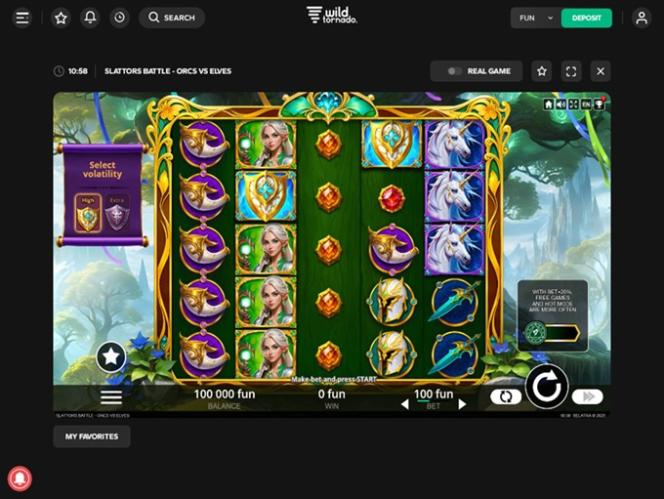 كازينو وايلد تورنادو هو موقع مراهنات إلكتروني تأسس عام ٢٠١٧ بواسطة شركة دايريكس إن في. يشتهر الكازينو بتقديم مكتبة ضخمة من ألعاب القمار الإلكترونية، بالإضافة إلى أوقات دفع مصرفية جيدة. الكازينو جيد، وإن كان متواضعًا بعض الشيء، مقارنةً بكازينوهات أخرى حول العالم.