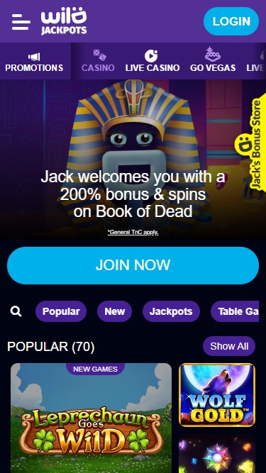 كازينو وايلد جاكبوتس هو موقع مراهنات إلكتروني تأسس عام ٢٠١٤، وتديره شركة جو وايلد مالطا المحدودة، ومقرها مالطا. لم يمضِ على افتتاحه سوى فترة قصيرة، ولكنه اكتسب سمعة طيبة بفضل ألعابه النزيهة ومكافآته الممتازة وسرعة صرف أرباحه.