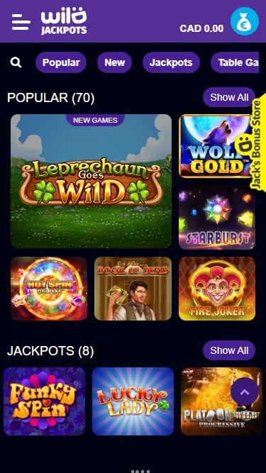 بالإضافة إلى ألعاب الكازينو القياسية، يقدم كازينو Wild Jackpot أيضًا ألعاب الموزع المباشر وألعاب الآركيد وبطاقات الخدش لعملائه.
