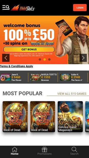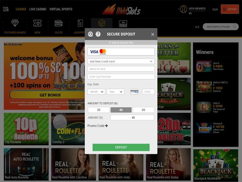 كازينو WildSlots مدعوم بواسطة Microgaming, Net Entertainment, Playtech, BetSoft, 1x2gaming, Big Time Gaming, Evolution Gaming, EYECON, Ezugi, iSoftBet, Oryx, Play'n GO, playson, Quickspin, Rabcat, Wazdan, Realistic Games, Betgames, Booming Games, Stakelogic, Pragmatic Play, Red Tiger Gaming, Spinomenal, Red Rake Gaming, Skillzzgaming, Skywind, Triple Edge Studios, Northern Lights Gaming, Gameburger Studios, Neon Valley Studios, SpinPlay Games, Real Dealer Studios, Buck Stakes Entertainment, Games Global, Wizard Games, 2by2 Gaming, Ainsworth, Blueprint Gaming, Endemol Games, NextGen, NYX Interactive, Pariplay, Inspired Gaming, Cayetano, Gamomat, CORE Gaming, Reel Time Gaming, Authentic Gaming, betiXon, Bally Wulff, Iron Dog Studio, Old Skool Studios, Foxium, Just For The Win, Reflex Gaming, PearFiction Studios, Wild Streak Gaming, Fortune Factory Studios, RubyPlay, Gamevy, Crazy Tooth Studio, Alchemy Gaming, Snowborn Games, Hacksaw Gaming, Gold Coin Studios, Slotmill, Aurum Signature Studios, Lucksome Gaming, Area Vegas, Wishbone Games, Spribe, INO Games, Nailed It! Games, Atomic Slot Lab, Neko Games, Reel Kingdom and Oros Gaming ، وتُقدم ألعاب الكازينو عبر منصة لعب فوري عبر الإنترنت، حيث يُسجل اللاعبون ويودعون الأموال ويلعبون، كل ذلك من خلال متصفح جهاز الكمبيوتر. كما يدعم الكازينو الألعاب عبر الهواتف المحمولة بشكل كامل، ما يعني أنه يمكنك لعب ألعاب الكازينو عبر هاتفك الذكي أو جهازك اللوحي من أي مكان يتوفر فيه اتصال بالإنترنت.المقامرة المسؤولة ودعم العملاء والأمان