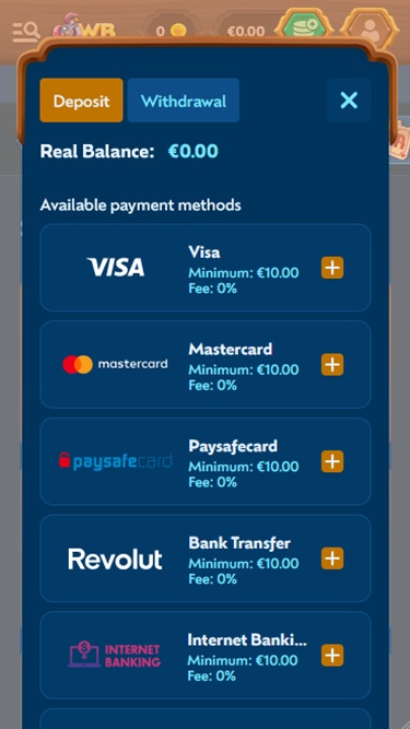 عندما يتعلق الأمر بخيارات الدفع، هناك عدد كبير من طرق الدفع المصرفية الموثوقة المتاحة لأعضاء الكازينو، بما في ذلك التحويلات المصرفية، وبطاقات الدفع، والمحافظ الإلكترونية الشهيرة مثل Skrill وNeteller وRevolut وأنظمة الخدمات المصرفية عبر الإنترنت الأخرى، وخيارات الدفع بالعملات المشفرة .