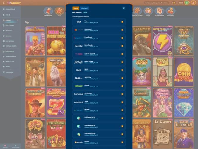 تجدر الإشارة إلى أن عملية التسجيل سريعة وبسيطة، ويمكن الوصول إلى جميع المحتوى المتاح من جميع الأجهزة، سواءً المحمولة أو المكتبية. سواءً كنت من محبي ألعاب الكازينو أثناء التنقل أو تستمتع بشاشة كبيرة وجهاز كمبيوتر شخصي، فإن كلا الجهازين سيمنحك أوقات تحميل ممتازة وتجربة لعب ممتعة. فقط تأكد من أن اتصالك بالإنترنت موثوق. إذا كان الأمر كذلك، فنحن على ثقة بأنك جاهز تمامًا لاستكشاف Winbay، وندعوك للانضمام إلينا في هذه المغامرة.
