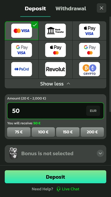 للوصول إلى جميع محتويات المقامرة المتاحة والاستمتاع الكامل بخدمات الكازينو، ستحتاج إلى إنشاء حساب جديد. للقيام بذلك، أدخل بريدك الإلكتروني وتأكد من موافقتك على شروط وأحكام الكازينو، أو يمكنك التسجيل باستخدام حساب جوجل الحالي. تتضمن هذه الخطوة أيضًا إدخال رمز ترويجي في حال رغبتك في استخدام بعض مكافآت الكازينو المتاحة.