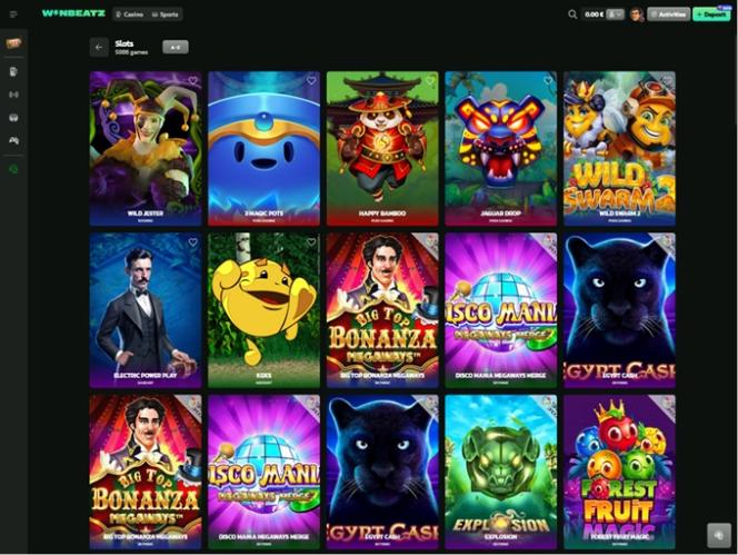 يُقدّم هذا الموقع الإلكتروني تشكيلة واسعة من الألعاب. يمكن لأعضاء الكازينو الاستمتاع بساعات طويلة من الترفيه عالي الجودة، حيث يتعاون كازينو Winbeatz مع عدد كبير من مطوري برامج الكازينوهات الإلكترونية المتميزين ، بما في ذلك Microgaming, Net Entertainment, Playtech, BetSoft, Evolution Gaming, Novomatic, playson, Relax Gaming, Yggdrasil, Endorphina, Wazdan, GameArt, Booming Games, Pragmatic Play, Red Tiger Gaming, Booongo, LuckyStreak, Spinomenal, Felix Gaming, Fugaso, Belatra Games, Platipus Gaming, Skywind, Spadegaming, Triple Edge Studios, BGAMING, Northern Lights Gaming, Fazi, Evoplay, Stormcraft Studios, Pocket Games Soft, Bulletproof Games, All41 Studios, Mascot Gaming, NetGame Entertainment, Gameburger Studios, Pulse 8 Studios, Neon Valley Studios, Swintt, Mancala Gaming, KA Gaming, Buck Stakes Entertainment, Games Global, Amusnet Interactive, Ash Gaming, Greentube, Tom Horn Gaming, MGA, Foxium, Just For The Win, Reflex Gaming, PearFiction Studios, Wild Streak Gaming, Fortune Factory Studios, RubyPlay, 4ThePlayer, AvatarUX, Crazy Tooth Studio, SlotVision, Alchemy Gaming, Rarestone Gaming, Gold Coin Studios, Bang Bang Games, Gamzix, Peter And Sons, Aurum Signature Studios, Onlyplay, FastSpin, Aviatrix, 3 Oaks Gaming, Apparat Gaming, 1spin4win, Gaming Corps, HammerTime Games, Nailed It! Games, Neko Games, Reel Kingdom, Popiplay, Zillion Games, ICONIC21, Clawbuster, Slotopia, Galaxsys, VoltEnt, Turbo Games, Penguin King and Red Papaya . تُزوّد هذه العلامات التجارية المعروفة كازينو Winbeatz بألعاب كازينو من جميع الأنواع.