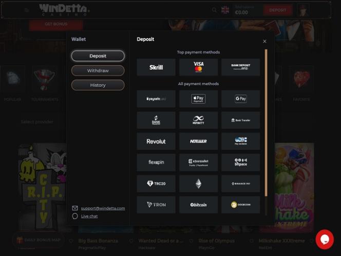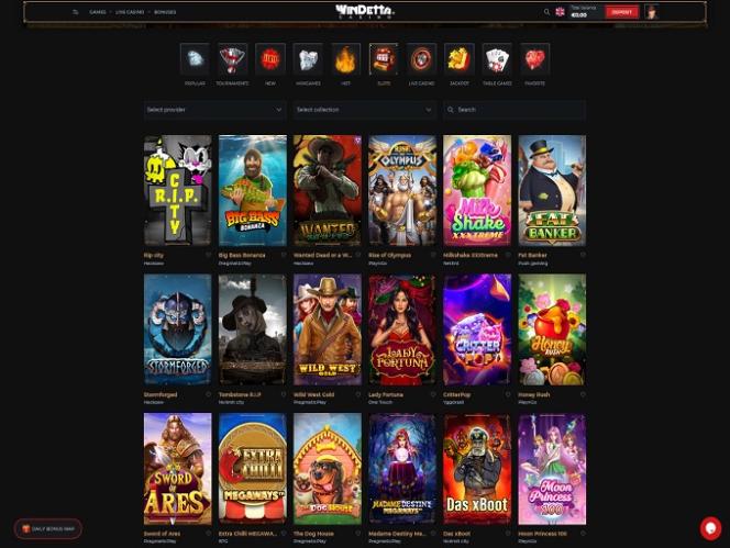 يستضيف كازينو Windetta مجموعة كبيرة من ألعاب Slots منظمة بشكل جيد في فئات فرعية: Bonus Buy، وHigh volvitality، وMegaways، وPays both way، وPick bonus.
