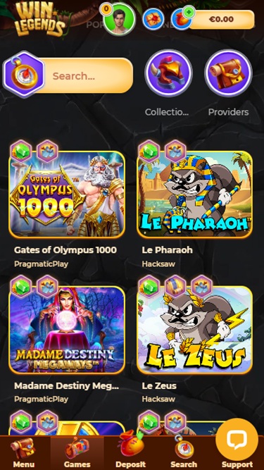 منصة الكازينو مُحسّنة للأجهزة المتعددة وسهلة الاستخدام. ونظرًا لاستضافة المُشغّل لمكتبة ألعاب ضخمة، يُعدّ التصنيف الممتاز ميزةً كبيرة، لذا ترك WinLegends انطباعًا أوليًا رائعًا.