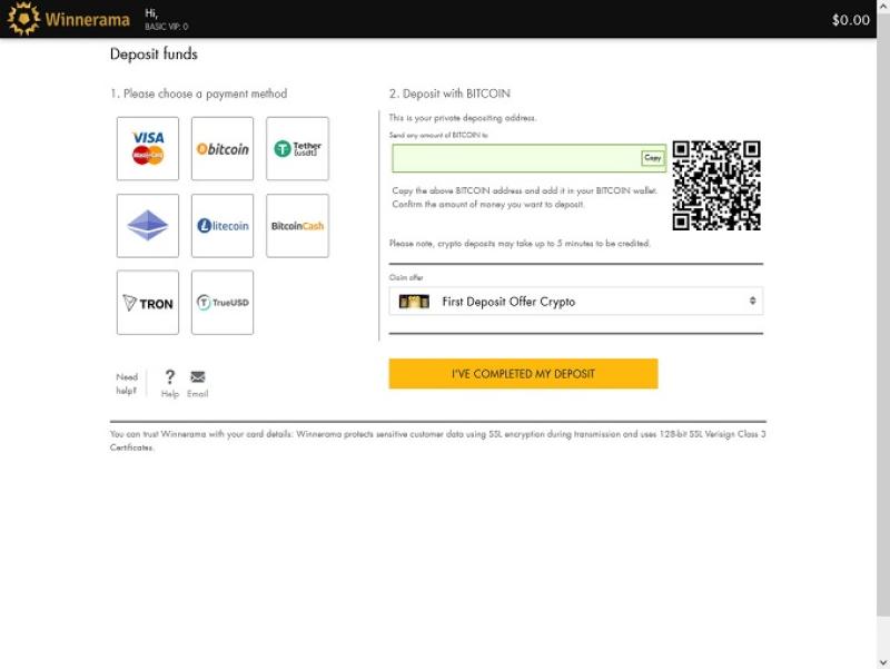 Winnerama هو كازينو إلكتروني يدعم العملات المشفرة، ويدعم خيارات دفع متنوعة بالعملات المشفرة. سيُقدّر اللاعبون التقليديون معرفة أنه حتى لو لم ينتقلوا بعد إلى المقامرة بالعملات المشفرة، يمكنهم استخدام طرق الدفع المصرفية التقليدية للإيداع والسحب، مثل بطاقات الدفع والتحويلات البنكية.
