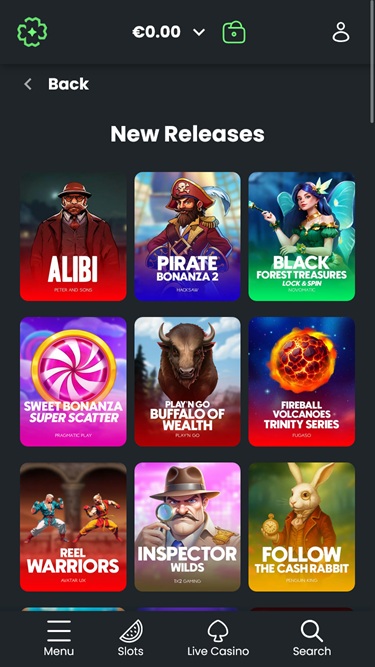 يمكن العثور على المحتوى بأكمله على الجانب الأيسر من شاشتك داخل قائمة الكازينو والتي يمكن الوصول إليها بسهولة بنقرة زر واحدة.