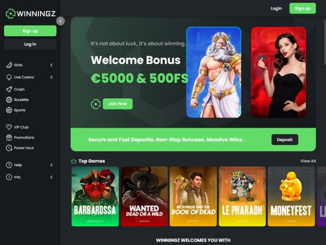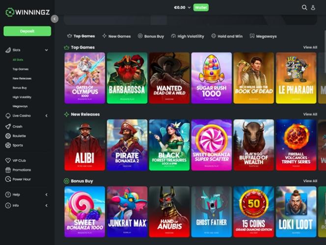 يأتي كازينو Winningz بتصميم أنيق وبسيط للغاية حيث يبدو أن كل شيء منظم بشكل جيد في عدة أقسام حتى لا تضيع طريقك حول الخلفية.