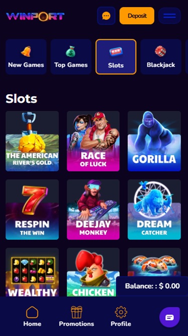 تتعاون WinPort مع Rival وNucleus Gaming وDragon Gaming وتوفر ألعاب الكازينو عبر الإنترنت في فئات شائعة مختلفة مثل: