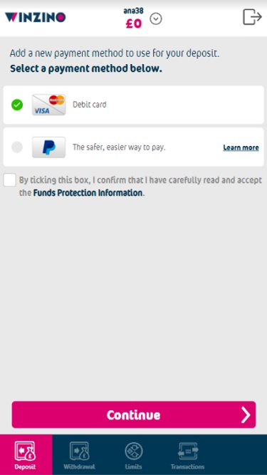 يتميز نظام Winzino المصرفي بثباته، حيث تتم معالجة المدفوعات خلال يومين إلى ثلاثة أيام عمل، مع وجود حد سحب يومي قدره 10,000 جنيه إسترليني للمكاسب. يقبل الكازينو الإيداع والسحب عبر Skrill وVisa وPaysafecard وMasterCard، كما يمكن الإيداع عبر Giropay وMaestro وiDeal وSOFORT. كما يمكن للاعبين طلب السحب عبر شيك ورقي.