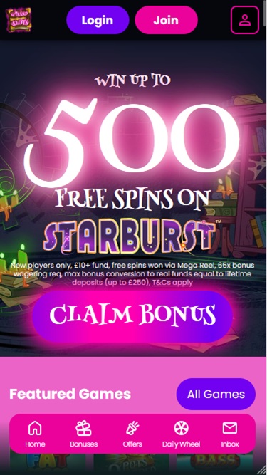 يعمل كازينو Wizard Slots بواسطة Microgaming, Net Entertainment, Playtech, 1x2gaming, Barcrest, Big Time Gaming, ELK Studios, EYECON, lightningboxgames, Oryx, Play'n GO, playson, Quickspin, Thunderkick, Yggdrasil, Wazdan, Booming Games, Pragmatic Play, Nolimit City, Red Tiger Gaming, Red Rake Gaming, Fantasma Games, FunFair, Spin Games, Skywind, Triple Edge Studios, Northern Lights Gaming, Stormcraft Studios, Bulletproof Games, All41 Studios, Gluck Games, Gameburger Studios, Pulse 8 Studios, Neon Valley Studios, Golden Rock Studios, Shuffle Master, SpinPlay Games, HungryBear Gaming, GONG Gaming, Blue Guru Games, Design Works Gaming, Games Global, 2by2 Gaming, Ash Gaming, Bally Technologies, bluberi, Endemol Games, Jumpman Gaming, Leander Games, NextGen, NYX Interactive, WMS, Inspired Gaming, Gaming Realms, SG Interactive, Gamomat, Red7Mobile, Scientific Games, Reel Time Gaming, Iron Dog Studio, Old Skool Studios, Foxium, Betdigital, Just For The Win, The Games Company, Reflex Gaming, MetaGU, PearFiction Studios, Wild Streak Gaming, Slingshot Studios, Fortune Factory Studios, Jade Rabbit Gaming, 4ThePlayer, AvatarUX, Gamevy, Crazy Tooth Studio, ReelPlay, Alchemy Gaming, Rarestone Gaming, Snowborn Games, Boomerang Studios, Hacksaw Gaming, Max Win Gaming, Gold Coin Studios, Bang Bang Games, Half Pixel Studios, Triple Cherry, Peter And Sons, Lucksome Gaming, Area Vegas, RAW iGaming, Wishbone Games, HammerTime Games, INO Games, Nailed It! Games, Atomic Slot Lab, Neko Games, Reel Kingdom, Oros Gaming, Indigo Magic and Light & Wonder ، وتُقدم ألعابه للمستخدمين عبر منصة لعب فوري عبر الإنترنت. كما يدعم الكازينو اللعب عبر الهاتف المحمول، ما يتيح لك تسجيل الدخول والمراهنة عبر هاتفك الذكي أو جهازك اللوحي.
