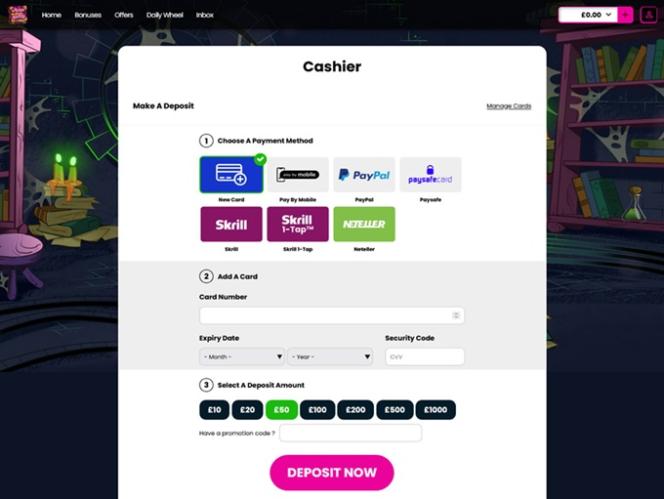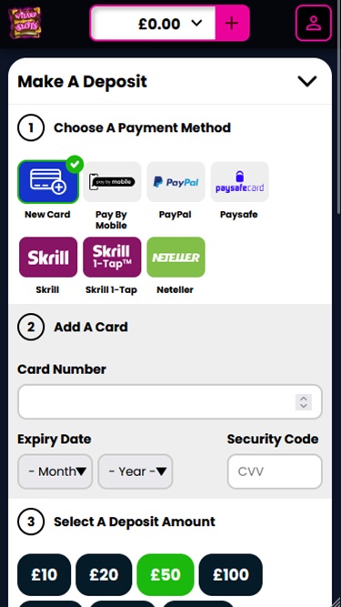 خيارات الخدمات المصرفية في Wizard Slots Casino