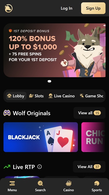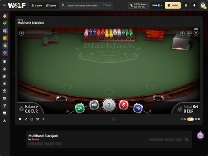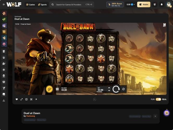 يُعدّ Wolf.io كازينوًا متكاملًا على الإنترنت، يُقدّم تشكيلة واسعة من ألعاب الكازينو، بما في ذلك ماكينات القمار بأموال حقيقية، وألعاب الموزع المباشر، وألعاب الطاولة، وألعاب الحظ الفورية. وتتمثل ميزته الرئيسية في إمكانية استخدام العملات النقدية التقليدية والعملات الرقمية لإدارة الأموال. يرحب الموقع باللاعبين من ألمانيا والنمسا وسويسرا ونيوزيلندا وفنلندا ، ويدعوهم لتجربة جميع الألعاب الرائعة والمكافآت المغرية.
