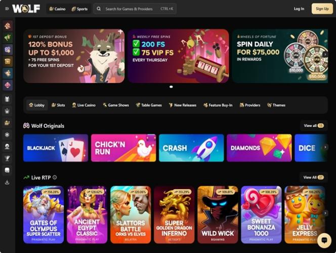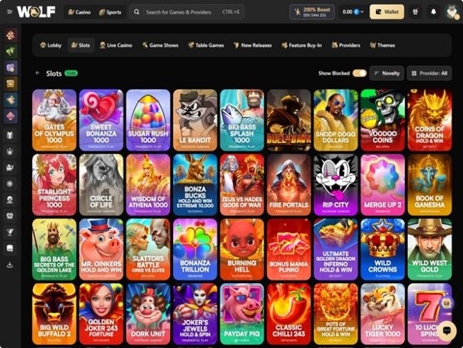 يهدف موقع Wolf.io إلى تقديم مكتبة ألعاب ضخمة تشمل مختلف أنواع الألعاب، لكنّ قائمة ألعاب السلوتس التي تتيح اللعب بأموال حقيقية تتفوق بلا شك على أي فئة أخرى. لهذا السبب، يمكنك الاستمتاع بآلاف ألعاب السلوتس عالية الجودة عبر الإنترنت، ولكل منها ميزاتها وآلياتها الفريدة. إليك بعض أشهر ألعاب السلوتس: