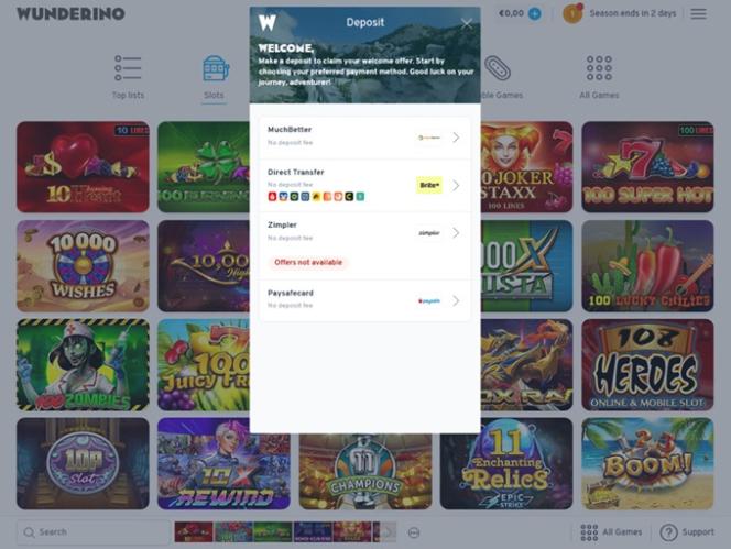بالاطلاع على الشروط والأحكام في كازينو ووندرينو، لا يوجد ما يُصنف على أنه استغلالي أو غير عادل تجاه اللاعبين. يتميز النظام المصرفي في كازينو ووندرينو بالكفاءة، حيث يُتيح الموقع إمكانية الإيداع والسحب عبر التحويل البنكي، وبطاقات iDeal، وMaestro، وMasterCard، وPaysafecard، وVisa، وSOFORT، وTrustly، وGiro Pay. يُصرف الكازينو أرباحك خلال فترة تتراوح بين يوم وأربعة أيام عمل، حسب طريقة الدفع المُختارة.خيارات الخدمات المصرفية في Wunderino Casino