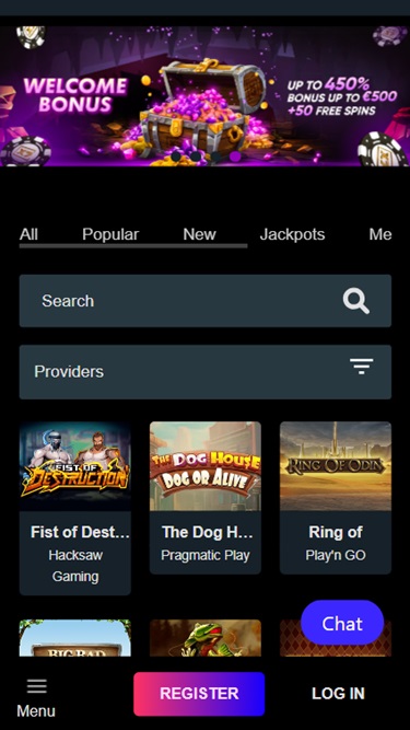 يمكنك لعب الألعاب من موفري البرامج الرائدين عالميًا والمعروفين مثل Play'n GO و Quickspin و Pragmatic Play و Evolution و Microgaming بينما تتمكن أيضًا من تجربة الألعاب من العديد من المطورين الأصغر مثل Fantasma Games وTriple Edge Studios وMascot Gaming.
