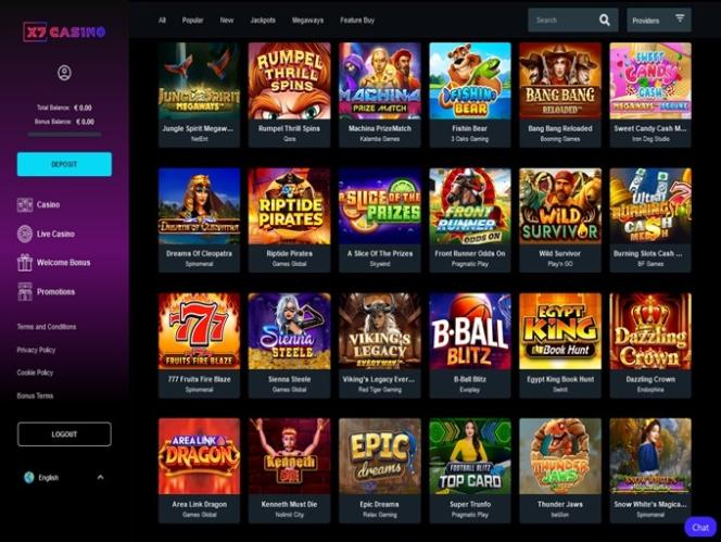 على أي حال، استحوذ كازينو X7 على تراخيص من أكثر من 95 استوديو في هذا المجال، مما جعل ألعابه المتاحة واسعة وغنية بالتنوع. نتج عن ذلك مكتبة ألعاب تتيح لكل لاعب العثور على مئات الألعاب التي تناسب تفضيلاته تمامًا.