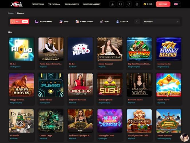 اللاعبون الذين يبحثون بشكل رئيسي عن ألعاب السلوتس على الإنترنت في كازينو Yakuza.bet لن يواجهوا أي مشكلة في العثور على مئات الألعاب المتميزة. المكتبة واسعة للغاية، وإذا كنت محتارًا من أين تبدأ، ففكّر في الاطلاع على بعض هذه الألعاب الشهيرة: Money Stacks، وBeer Boost، وLe Bandit، وPixel Invaders، وPineapple Crush، وRunning Suchi، وJoker Flip، وCursed Crypt، وPenny Pelican، وPop، وOutsourced، وSweet Bonanza، وDance Party، وGargantooz، وTemplear Tumble، وHand of Midas 2، وYakuza Honor.