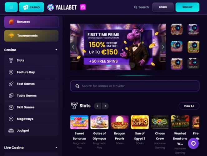 بمجرد دخولك إلى موقع الكازينو الإلكتروني، ستستقبلك واجهة عصرية ذات طابع أرجواني. تتميز القائمة بتنظيمها الجيد وسهولة الوصول إلى جميع الأقسام المهمة في الكازينو.