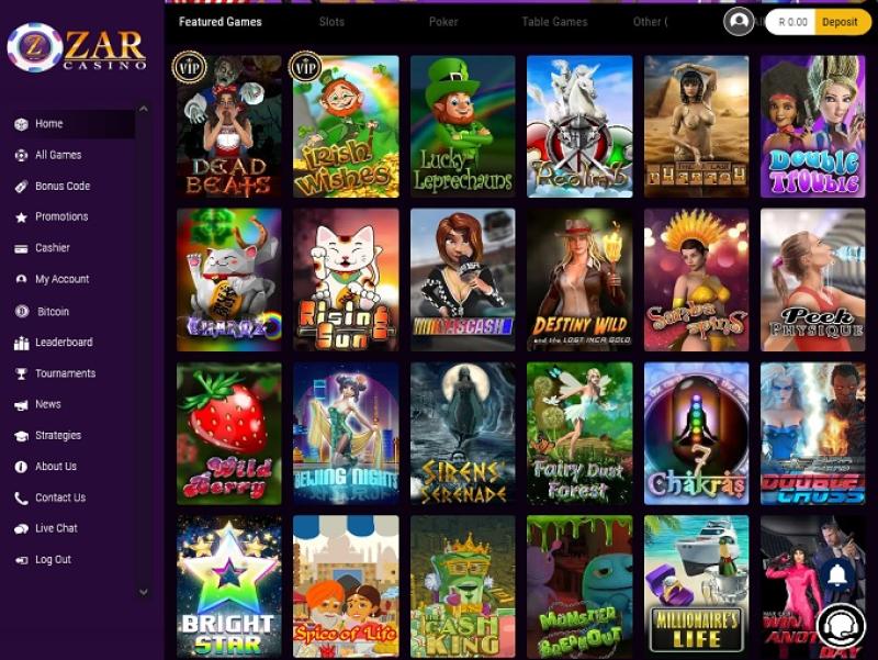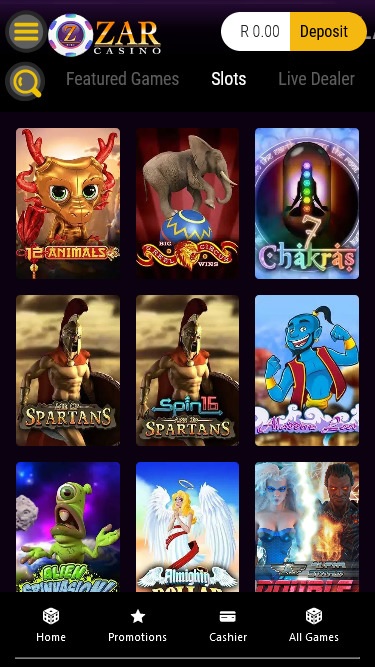 ستجد حوالي 70 لعبة سلوتس معروضة على ZAR، من بينها ألعاب Saucify. تتميز الألعاب بجودة عالية، وستجد العديد منها برسومات ثلاثية الأبعاد. تتضمن الألعاب ميزة Spin 16، التي توفر 16 طريقة مختلفة لتدوير البكرات. يدعم الموقع ألعاب السلوتس المحمولة، ما يتيح لك اللعب على هاتفك الذكي أو جهازك اللوحي، إذا رغبت في ذلك.