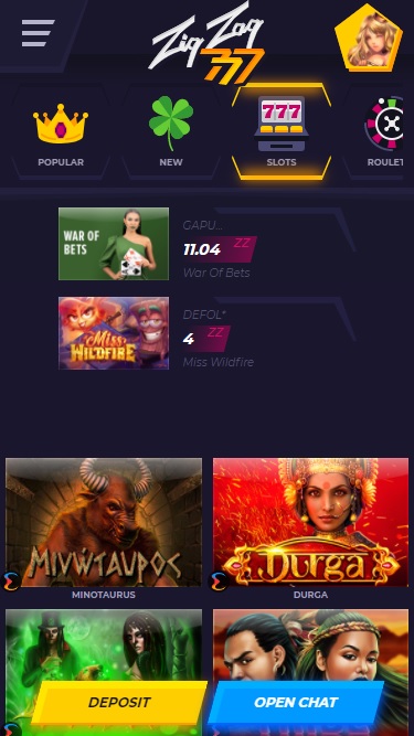 يقدم كازينو ZigZag777 مئات من ألعاب الفيديو سلوتس الكلاسيكية والحديثة، مع ألعاب مرخصة وفريدة من Microgaming وPragmatic Play، بالإضافة إلى مطورين تابعين لكلتا الشركتين. كما يدعم ألعاب سلوتس الهواتف المحمولة، ما يتيح لك تدوير البكرات من أي مكان يتوفر فيه اتصال بالإنترنت.