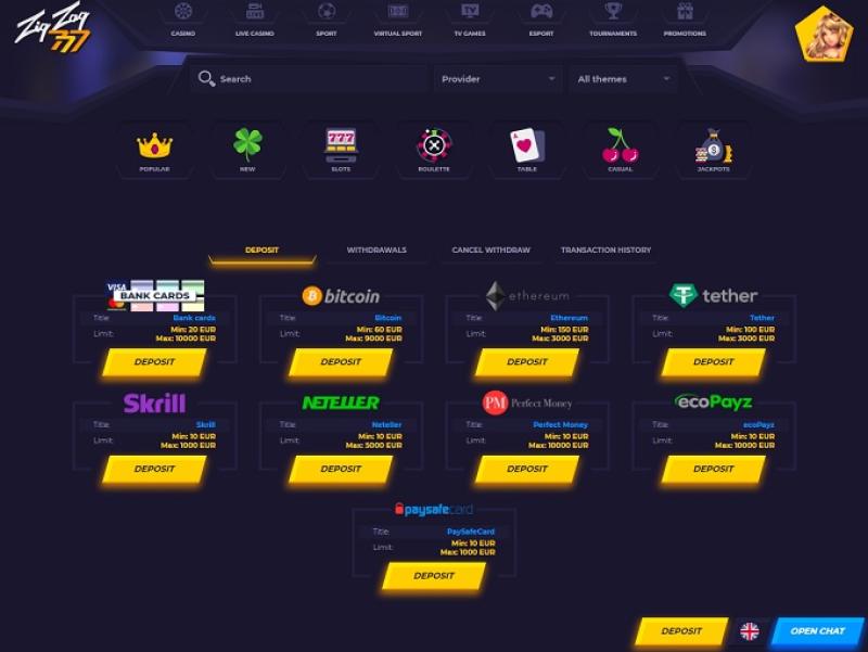 خيارات الخدمات المصرفية في ZigZag777 Casino