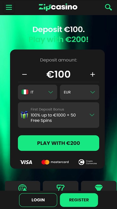 تتوفر للاعبين باقة ترحيب سخية يمكن استردادها مع أول أربع إيداعات في كازينو ZipCasino. يجب استيفاء متطلبات الرهان لهذا العرض خلال أسبوعين.