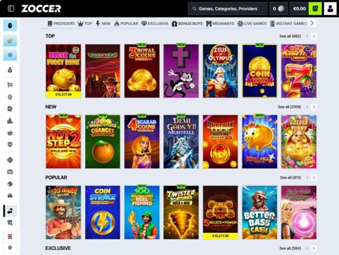 على الرغم من أن الكازينو يقدم تشكيلة واسعة من ألعاب الكازينو ، إلا أن معظمها ألعاب سلوتس. في زوكر، ستتمكن من تدوير بكرات عدد لا يحصى من الألعاب. إليك بعضًا منها: