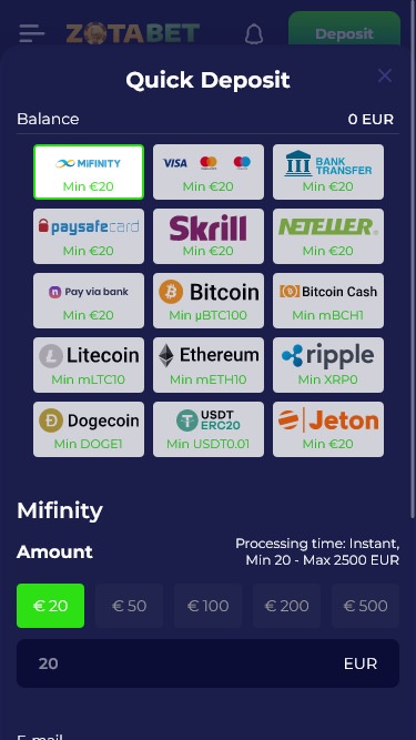 خيارات الخدمات المصرفية في ZotaBet Casino