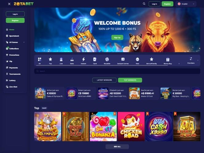 قد يُعجب الزوار بعروض هذا الكازينو التي تشمل مكتبة ألعاب غنية، وعروضًا ترويجية جذابة، وبرنامج ولاء، وغيرها الكثير. تجدر الإشارة إلى أن ZotaBet هي أيضًا شركة مراهنات رياضية، ما يتيح للاعبين توقع فعاليات وفرص مراهنات جذابة في قسم المراهنات الرياضية.