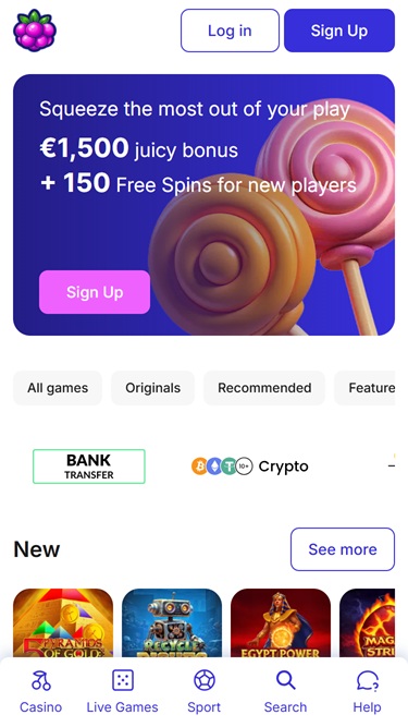 من ناحية أخرى، بالنسبة للاعبين الذين يرغبون في وضع رهانات على بعض أحداثهم الرياضية المفضلة ، فقد أعد الكازينو صفحة رياضية مخصصة يمكن العثور عليها في الأعلى والوصول إليها بنقرة واحدة فقط.