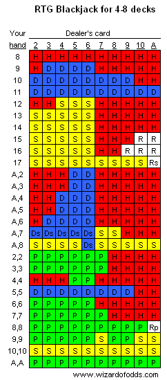 تُظهر الجداول التالية الاستراتيجية الأساسية لكازينوهات Real Time Gaming، لمجموعتين أو 4 إلى 8 مجموعات.