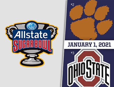 تُقدّم شركة Allstate مباراة نصف نهائي تصفيات كرة القدم الجامعية لموسم 2020-2021 في بطولة Sugar Bowl. ستُقام هذه المباراة المرتقبة يوم الجمعة، 1 يناير 2021، الساعة 8:00 بتوقيت شرق الولايات المتحدة. ستُقام هذه المباراة بين فريقي Clemson Tigers (المركز الثاني) وOhio State Buckeyes (المركز الثالث) على ملعب Mercedes-Benz Superdome في نيو أورلينز، لويزيانا، وهو معقل فريق New Orleans Saints في دوري كرة القدم الأمريكية. ستُبثّ المباراة على الصعيد الوطني عبر ESPN، أو يُمكن بثّها عبر تطبيق ESPN.