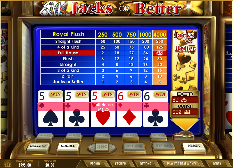 فيما يلي الألعاب وجداول الدفع والعوائد المتاحة لكل من الألعاب ذات اليد الواحدة والألعاب ذات اليدين إلى الأربع أيدي.