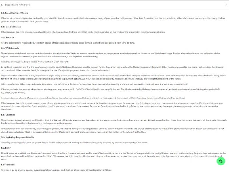 رسائل البريد الإلكتروني لخدمة العملاء: support@10bet.co.za