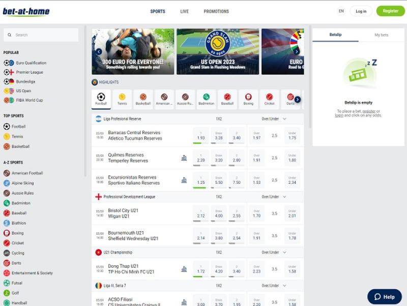 لا يُقدّم Bet-at-Home حاليًا بطاقة سباق لسباقات الخيل أو سباقات الكلاب السلوقية. هذه ميزة مطلوبة بشدة، ونرغب في تطبيقها في كتالوجهم الرياضي.