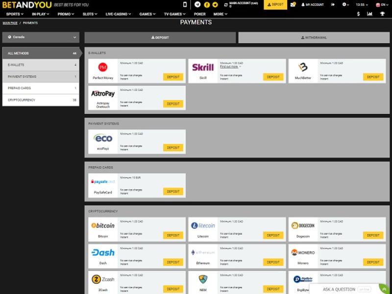 عند البحث عن موقع المراهنات الرياضية الأمثل، عليكَ البحث عن خيارات الدفع المتاحة. لحسن الحظ، يُقدّم Betandyou قائمةً شاملةً من طرق الدفع التي يُمكنك استخدامها لإيداع وسحب أموالك، وتشمل العديد من بطاقات الائتمان والخصم والمحافظ الإلكترونية، وحتى خيارات العملات المشفرة الحديثة.