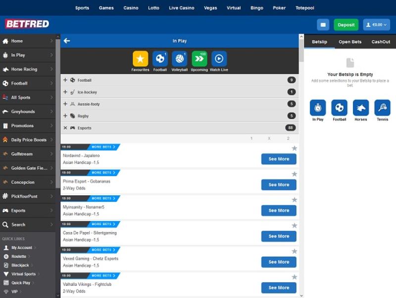 بشكل عام، يبدو BetFred موقعًا جيدًا للمراهنات الرياضية من حيث مجموعة الرياضات المتاحة للمراهنة. يوفر هذا المشغل كل ما يتوقعه اللاعبون من وكيل المراهنات الإلكتروني، بما في ذلك العروض الترويجية، وسباقات الخيل، وسباقات السلوقي، وبرنامج ولاء VIP لتحفيز عملائه على الاستمرار كمستخدمين مخلصين.