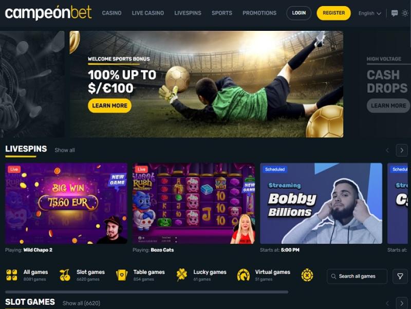 بالإضافة إلى خدمات المراهنات الرياضية، يقدم كامبيون بيت كازينو إلكترونيًا رائعًا يُقدم ألعابًا تشمل: البوكر، الباكارات، البلاك جاك، هاي لو، روكيت دايس، البوكر، الروليت، السلوتس، بلينكو، سكراتش دايس، ألعاب الطاولة، فيديو بينغو، كرابس، فيديو بوكر، فيديو سلوتس، وغيرها من ألعاب الطاولة. كما يوفر خيار الكازينو المباشر. تُعدّ هذه خيارات ألعاب رائعة للأفراد الذين يرغبون في الاستمتاع بألعاب الكازينو الكلاسيكية عند وضع رهاناتهم الرياضية. اعتبر هذا الموقع/الكازينو وجهة شاملة تُلبي جميع احتياجاتك ورغباتك في عالم المراهنات الترفيهية.