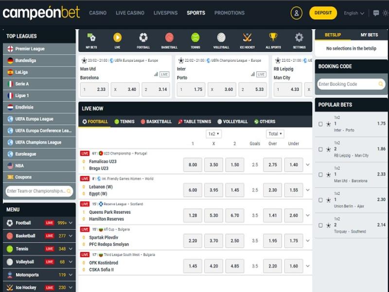 يقدم هذا المزود للألعاب الإلكترونية لمستخدميه تصميمًا رائعًا لموقعه الإلكتروني باستخدام سمة داكنة مع نص أبيض يتماشى مع تصميمه المتقن. قد يبدو موقع Campeon Bet للمراهنات الرياضية فوضويًا بعض الشيء، وذلك بفضل توفر العديد من العناصر في صفحة تبويب المراهنات الرياضية، مما يُمكّن اللاعبين من التنقل بسهولة في صفحة واحدة تحتوي على جميع المعلومات اللازمة، كما يُغني هذا التصميم عن فتح روابط متعددة في كل مكان.