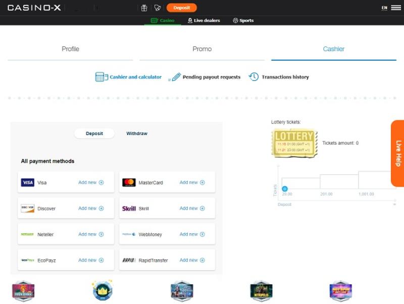 على الرغم من أن معظم قرائنا سيكونون مهتمين بجميع خيارات المراهنة الرياضية المتاحة في Casino-X، فمن المهم أيضًا أن نذكر أن هذا الموقع الرياضي يتميز أيضًا بقسم منفصل تمامًا مخصص لألعاب القمار التقليدية، حيث يمكنك استكشاف وتجربة كتالوج ضخم من الأنشطة والألعاب الجذابة المصممة للاعبي الكازينو.
