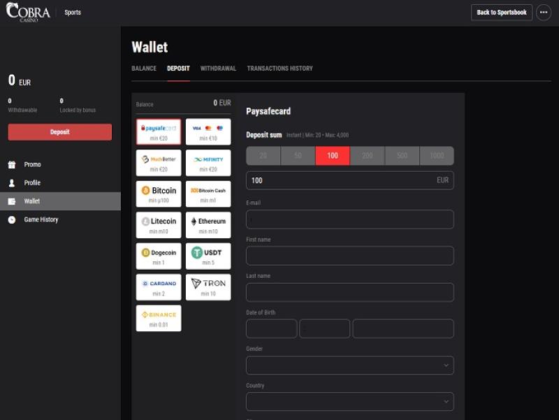 طرق الإيداع: Visa، Maestro، Master Card، Neteller، Skrill، Eco Payz، Pay Safe Card، Stic Pay، Interac، Interac e - transfer، Skrill Rapid Transfer، Neo Surf، i Debit، Venus Point، Siru Mobile، Bitcoin، Bitcoin Cash، Ethereum، و Litecoin.