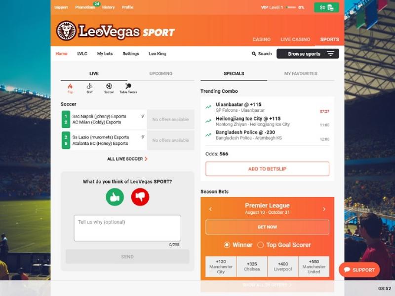 تعد شركة LeoVegas Sport من بين أوائل المشغلين الذين يعملون على منصة Kambi Sportsbook لواجهة المستخدم الأمامية وتجميع الاحتمالات وذكاء العملاء.