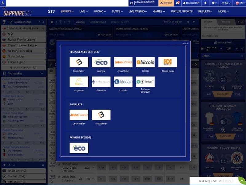 خيارات الخدمات المصرفية في Sapphirebet Casino