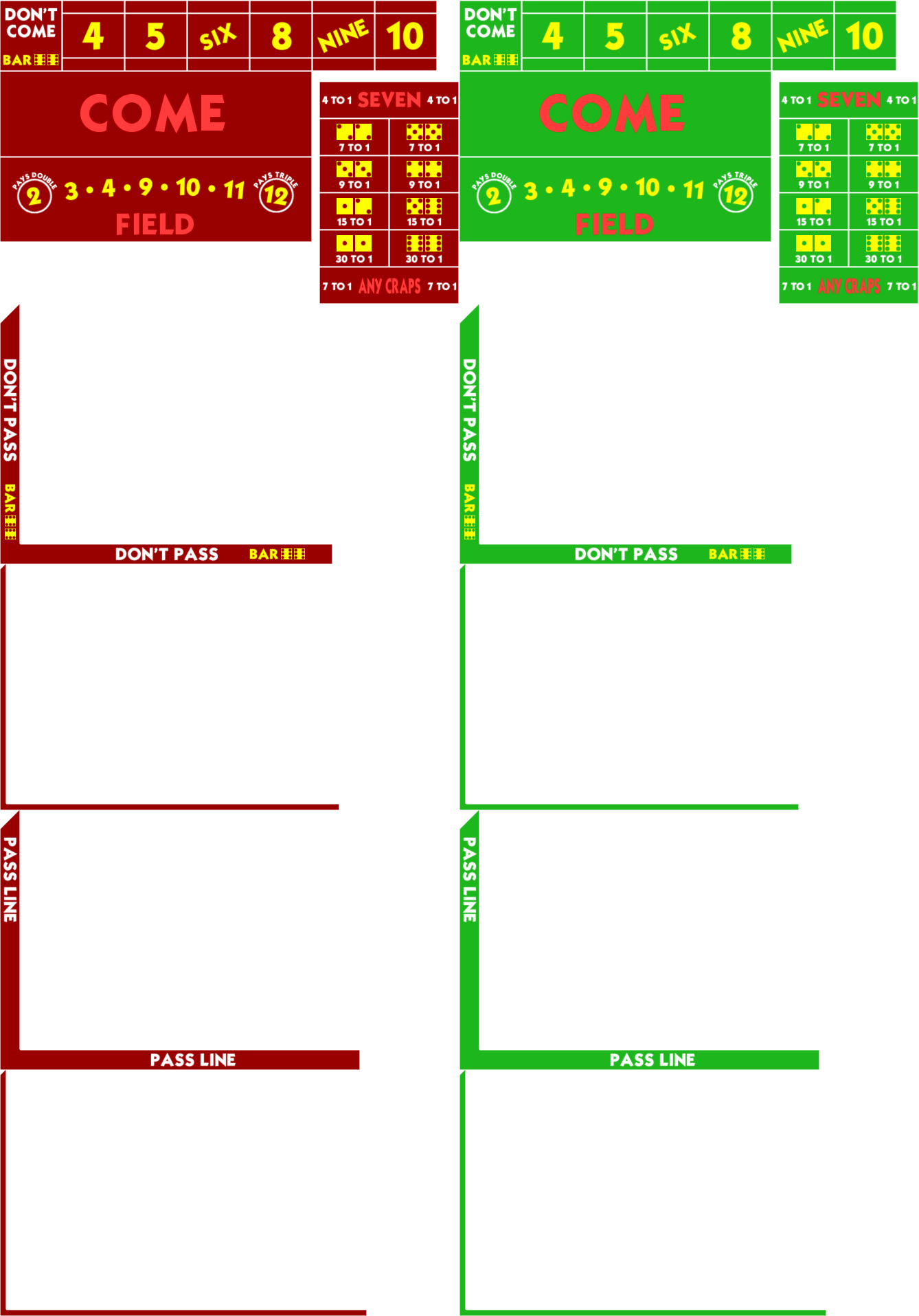 - لتبسيط اللعبة، بدلاً من تقديم رهانات "المكان" و"الشراء" معًا، أقدم رهانًا واحدًا فقط لكل رقم. كل رقم يمنح أفضل احتمالات بين رهانات "المكان" و"الشراء". أُطلق على هذه الرهانات اسم "رهانات الشراء". تدفع 7-6 على الرقمين 6 و8، و7-5 على الرقمين 5 و9، و39-20 على الرقمين 4 و10.